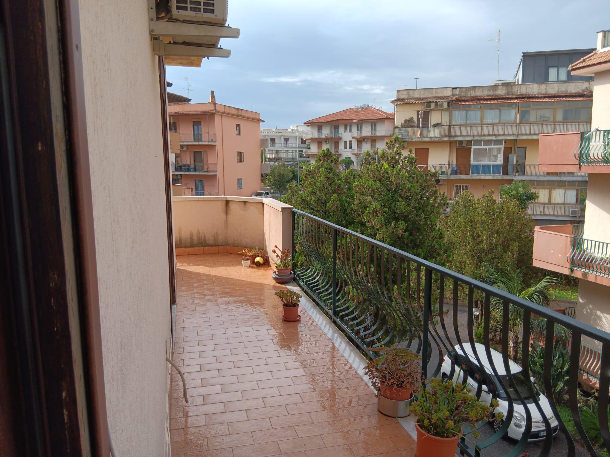 All’interno di un curato complesso residenziale, situato nella zona Nuova di Acireale, ben servita e ricca di attività e servizi di prima necessità, proponiamo in vendita appartamento posto al secondo ed ultimo piano, caratterizzato da ambienti ampi e ben distribuiti. L’ingresso conduce a una camera soggiorno luminosa, seguita da disimpegno, cucina abitabile con veranda, due camere da letto, ampio ripostiglio e doppi servizi, di cui uno con lavanderia. L’immobile è dotato di impianto di riscaldamento autonomo, gode di doppia esposizione e di un balcone perimetrale che garantisce ottima luminosità e ventilazione naturale. Elemento di grande pregio è il terrazzo sovrastante panoramico di circa 100 mq, ideale per momenti di relax, convivialità o per essere attrezzato come solarium o area living all’aperto. Completa la proprietà un garage di pertinenza di circa 15 mq.Soluzione ideale per chi cerca comfort, spazi esterni generosi e tranquillità all’interno di un contesto residenziale ben organizzato.